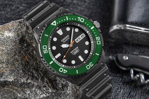 ✅ Sportowy design – czarna tarcza z kontrastowymi indeksami i zielonymi akcentami