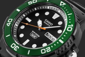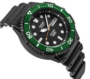 Casio MRW-230H-1E3VDF to sportowy zegarek zaprojektowany dla mężczyzn, którzy cenią niezawodność, funkcjonalność i nowoczesny wygląd. Duża, czytelna tarcza z wyraźnymi indeksami oraz funkcją dnia tygodnia i daty gwarantuje wygodę odczytu w każdych warunkach. Mocna koperta w kolorze czarno-zielonym i pasek z tworzywa sztucznego zapewniają trwałość oraz komfort użytkowania. Wodoszczelność do 100 metrów pozwala na bezpieczne korzystanie z zegarka podczas pływania czy aktywności sportowych. To połączenie sportowego stylu, wytrzymałości i praktyczności – idealne na co dzień i w podróży.