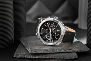 Styl i design: Czarna tarcza z kontrastującymi biało-czarnymi indeksami i srebrnymi wskazówkami tworzy elegancki, nowoczesny wygląd. Czerwony akcent sekundnika oraz detali subtarczy dodaje dynamicznego, sportowego charakteru, a czarny skórzany pasek dopełnia całości, nadając zegarkowi prestiżowego wyglądu.