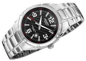 Casio EDIFICE EF-125D-1AVEG łączy precyzję kwarcowego mechanizmu z solidnym stalowym wykonaniem. Czarna karbonowa tarcza z czerwonymi cyframi na zewnętrznej krawędzi nadaje sportowego charakteru, a precyzyjny układ wskazówek ułatwia szybkie odczyty czasu. Wytrzymała koperta i fluorescencyjne podświetlenie zapewniają komfort użytkowania w każdych warunkach.
