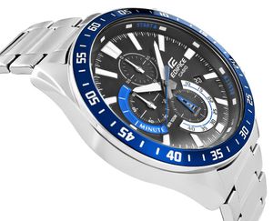 Casio Edifice EFV-620D-1A2VUDF to zegarek stworzony dla mężczyzn, którzy cenią sobie sportową energię i klasyczną elegancję. Duża koperta (55 mm) i granatowa tarcza z wyrazistymi subtarcza chronografu nadają mu charakter inspirowany światem motorsportu – dynamiczny, mocny i niezwykle stylowy.