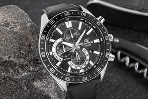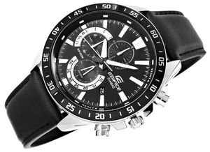 Postaw na wyrazistość z klasycznym chronografem EDIFICE EFV-620L-1AVUEF w odważnym połączeniu precyzyjnych detali i imponującego, dużego designu (koperta o średnicy 55 mm). Model zainspirowany światem motorsportu zachwyca efektownymi subtarczami, które podkreślają sportowy charakter, szybkość i inteligentny styl. Zegarek wyposażony jest w funkcję daty dni miesiąca oraz chronografy: stoper 1/10 sekundy, minuty stopera oraz sekundy stopera. Dzięki wodoszczelności 10 BAR możesz śmiało zabrać go na basen, trening czy wodną przygodę, a fluorescencyjne podświetlenie sprawia, że nawet po zmroku masz pełną kontrolę nad czasem.