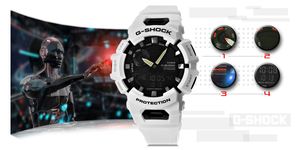 Postaw na wyrazistość z kultowym G-SHOCK GBA-900-7AER w odważnym połączeniu wytrzymałości i innowacyjnej technologii. Model zachwyca analogowo-cyfrową tarczą z funkcją 5 alarmów dziennych, kalendarzem automatycznym, timerem, stoperem, funkcją drzemki, wskazaniem połączeń przychodzących oraz możliwością połączenia z aplikacją G-Shock Move przez Bluetooth. Dzięki wodoszczelności 20 BAR możesz śmiało nurkować i korzystać z ekstremalnych aktywności wodnych, a fluorescencyjne podświetlenie LED zapewnia pełną kontrolę nad czasem nawet po zmroku.